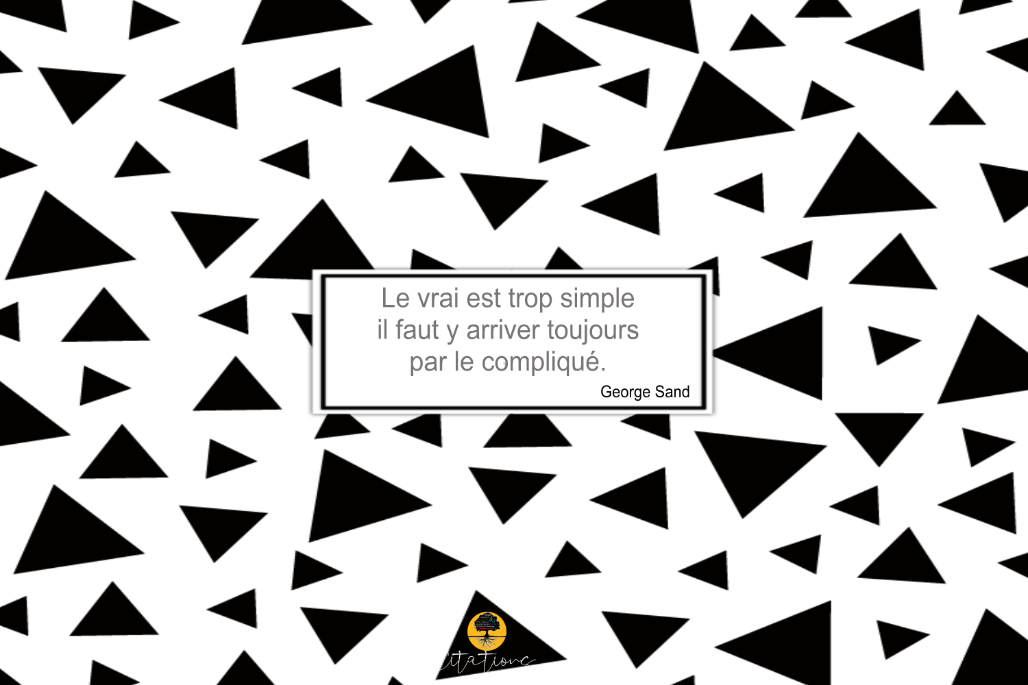 Citations Le vrai est trop simple… 31 Share Le vrai est trop simple il faut y arriver toujours par le compliqué. George Sand 31 Share