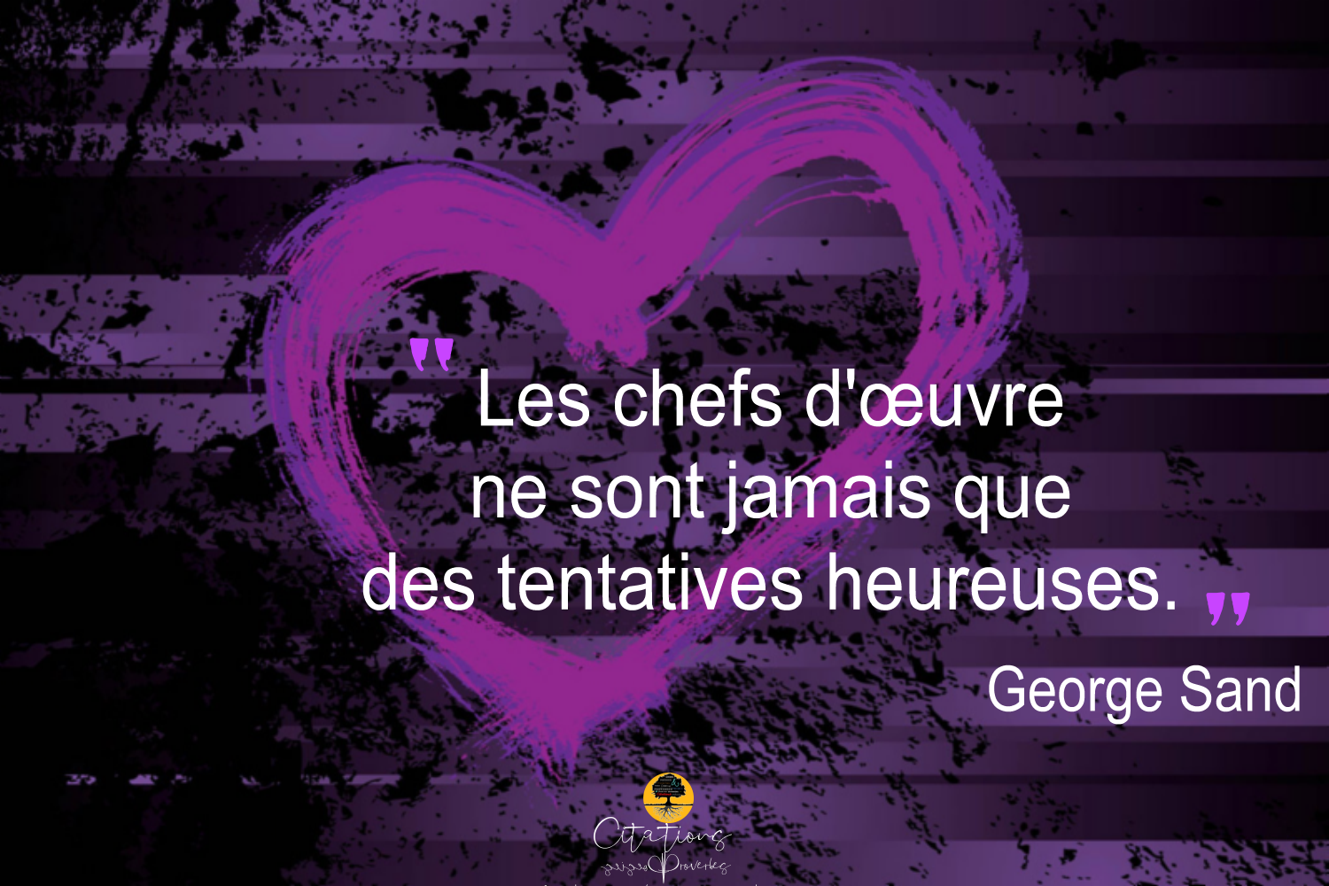 Citations Les chefs d’œuvre ne sont jamais que des tentatives heureuses. 25 Share Les chefs d’œuvre ne sont jamais que des tentatives heureuses. George Sand 25 Share