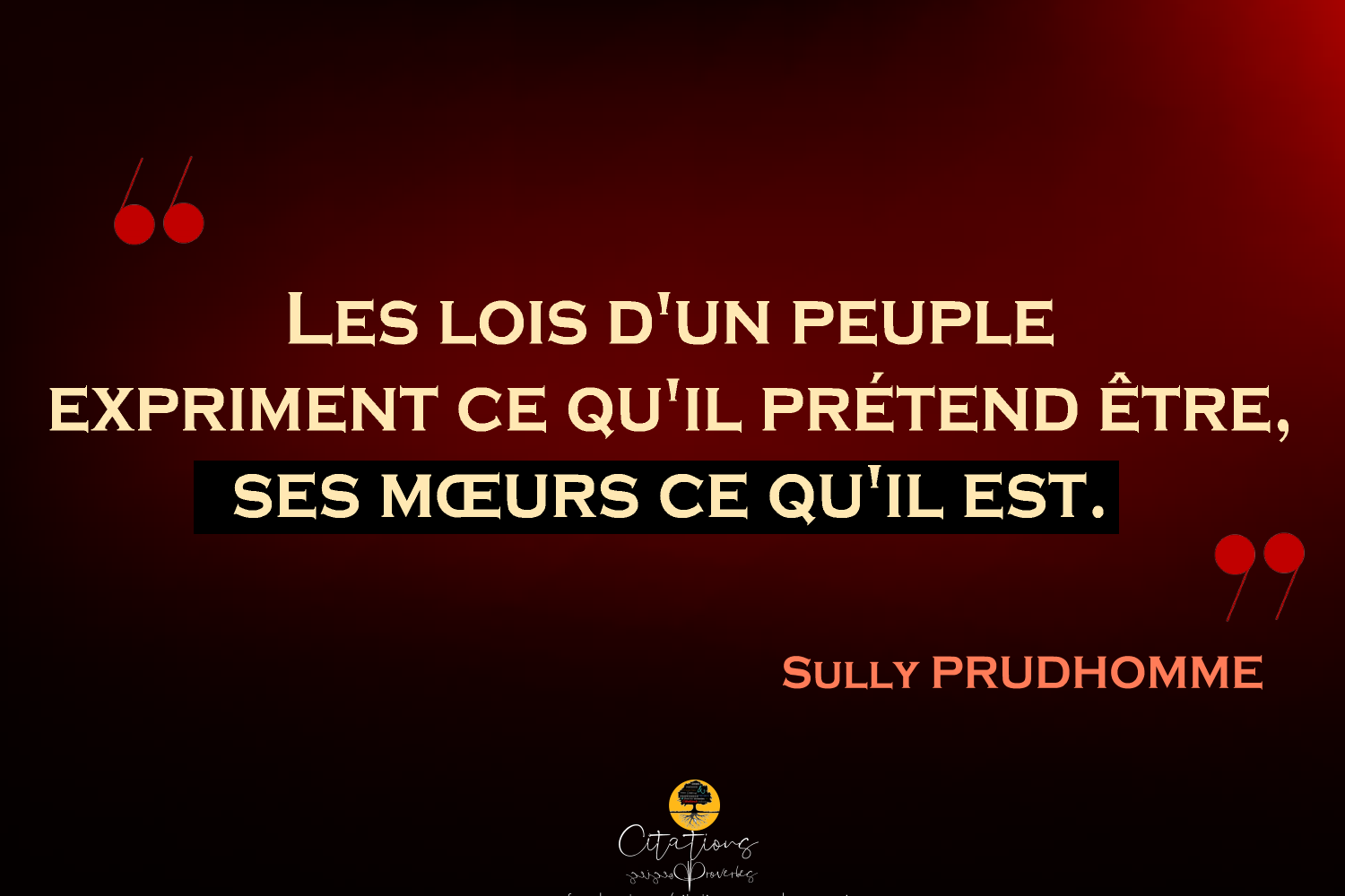 Les lois d’un peuple expriment ce qu’il prétend être, ses mœurs ce qu’il est.