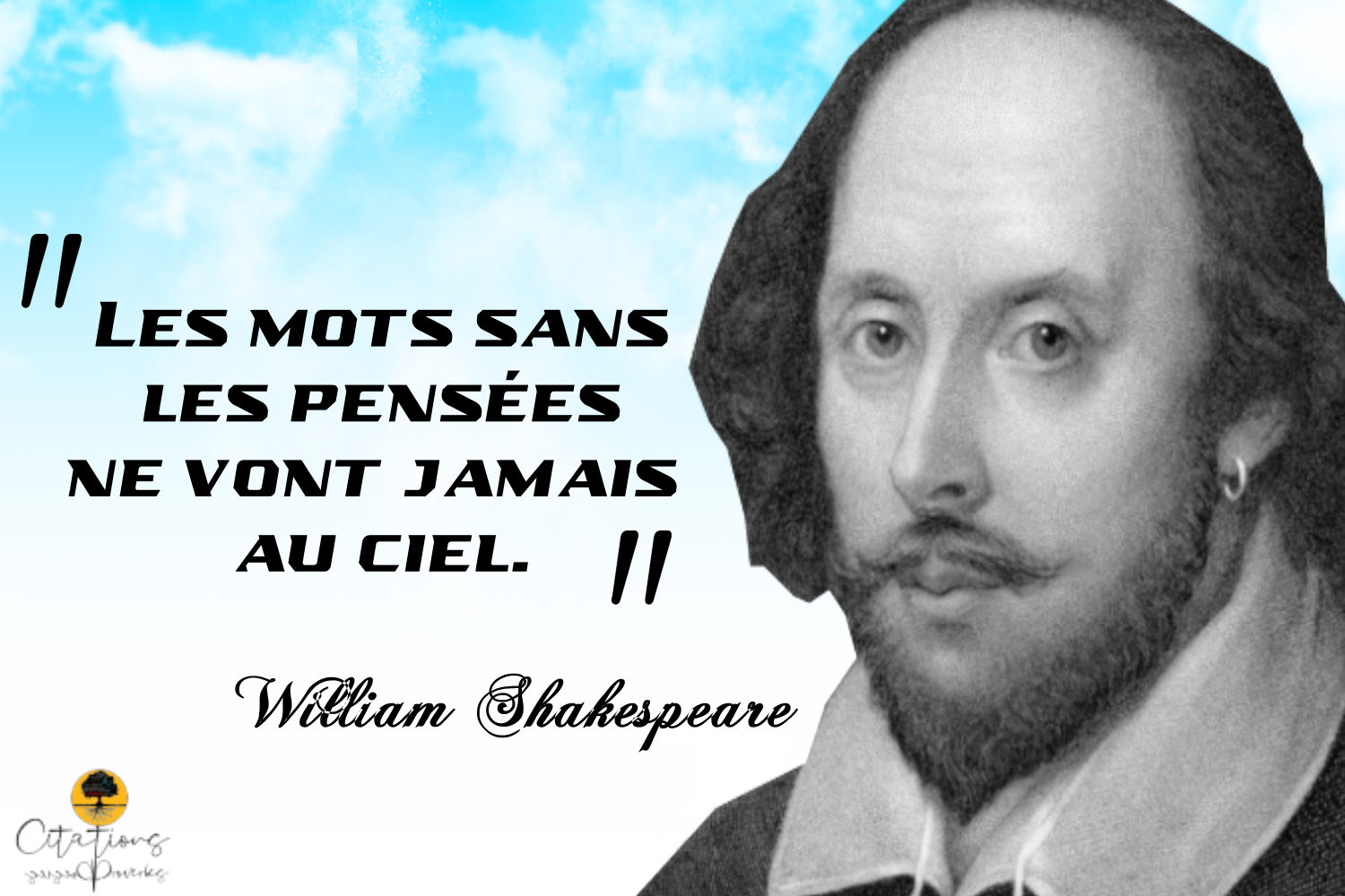 Citations Les mots sans les pensées ne vont jamais au ciel. 90 Share ” Les mots sans les pensées ne vont jamais au ciel.” William Shakespeare 90 Share