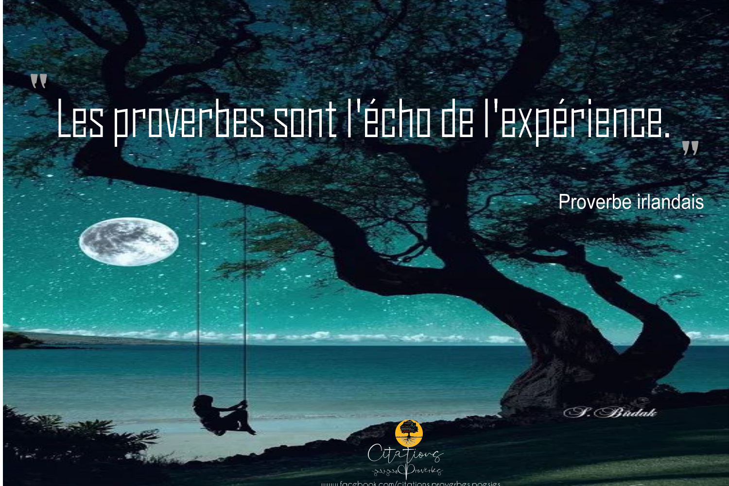Proverbes Les proverbes sont l’écho de l’expérience. 68 Share Les proverbes sont l’écho de l’expérience. Proverbe irlandais 68 Share