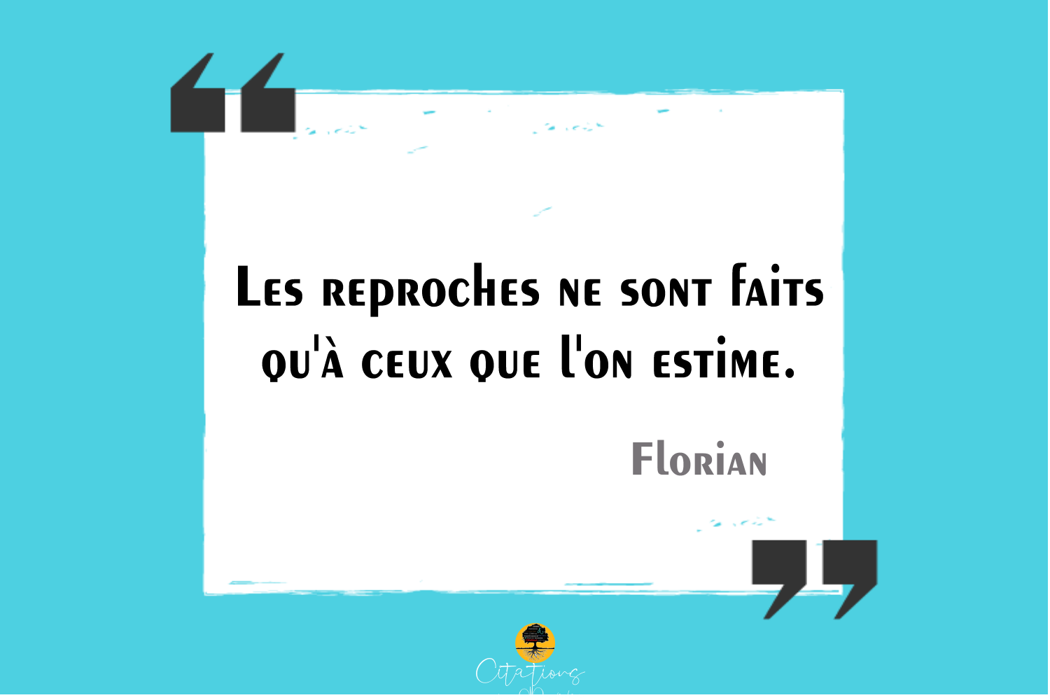 Citations Les reproches ne sont faits qu’à ceux que l’on estime. 90 Share Les reproches ne sont faits qu’à ceux que l’on estime. Florian 90 Share