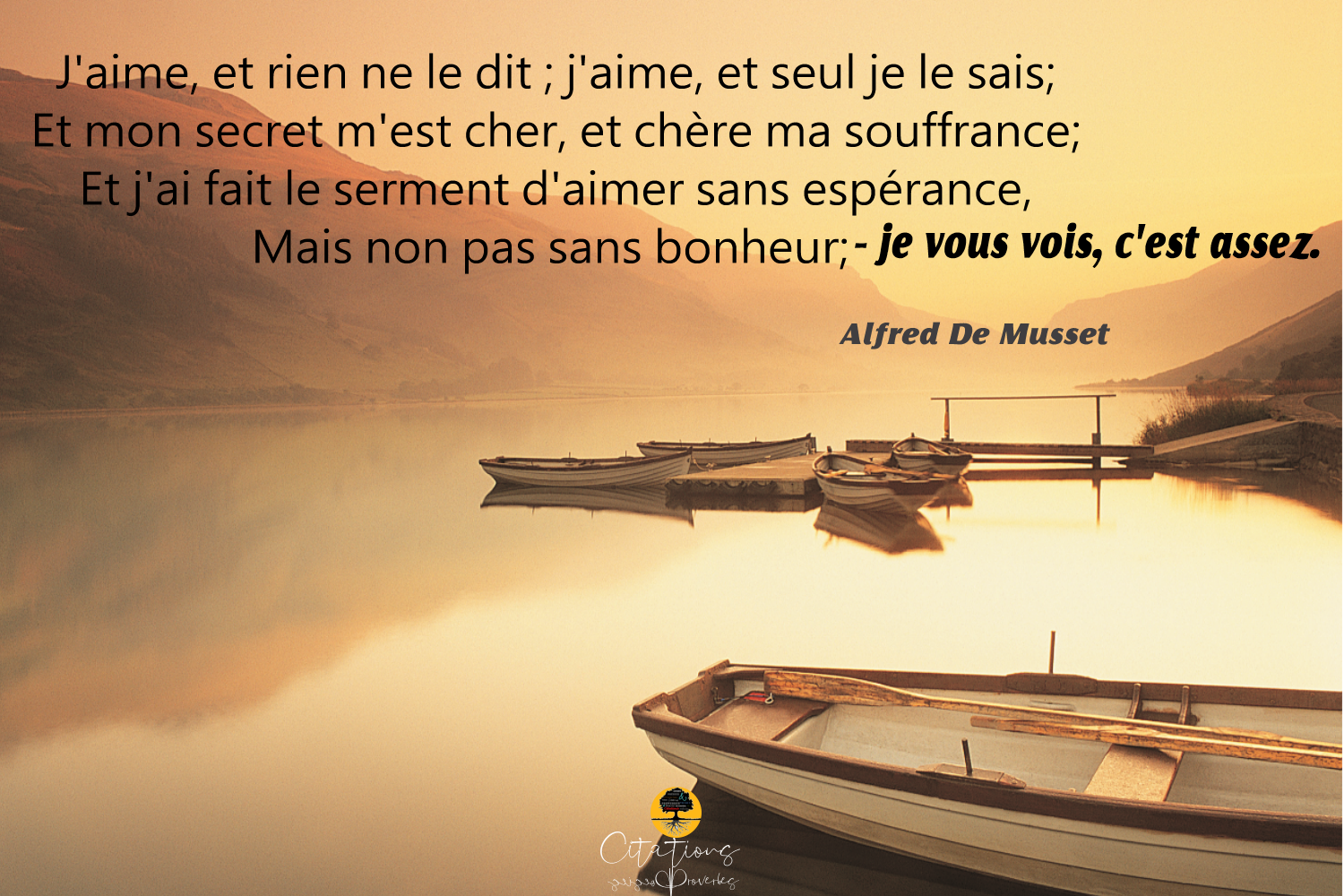Mais non pas sans bonheur; – je vous vois, c’est assez.Alfred De Musset