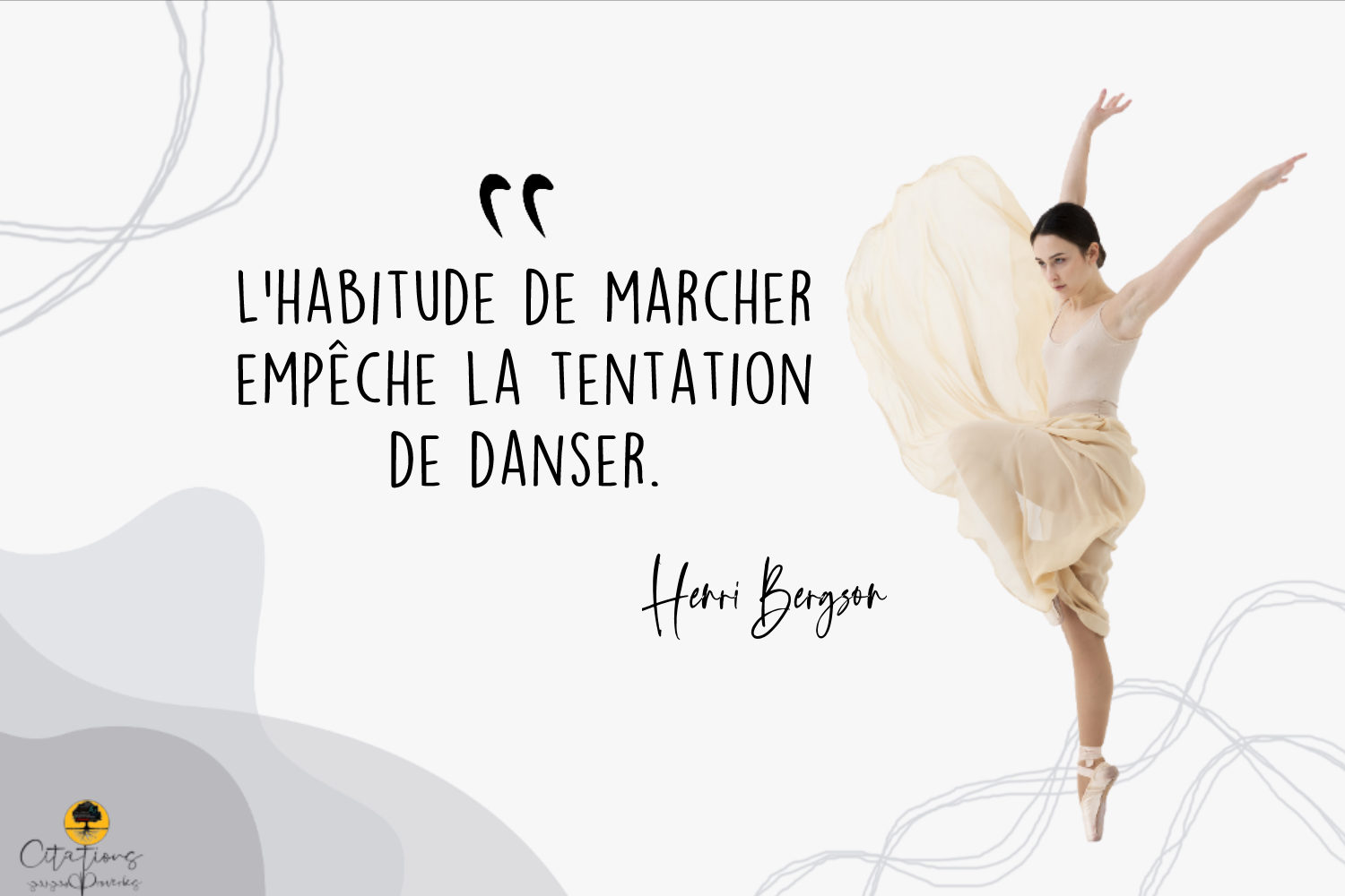 Citations L’habitude de marcher empêche la tentation de danser. 32 Share ” L’habitude de marcher empêche la tentation de danser.” Henri Bergson 32 Share