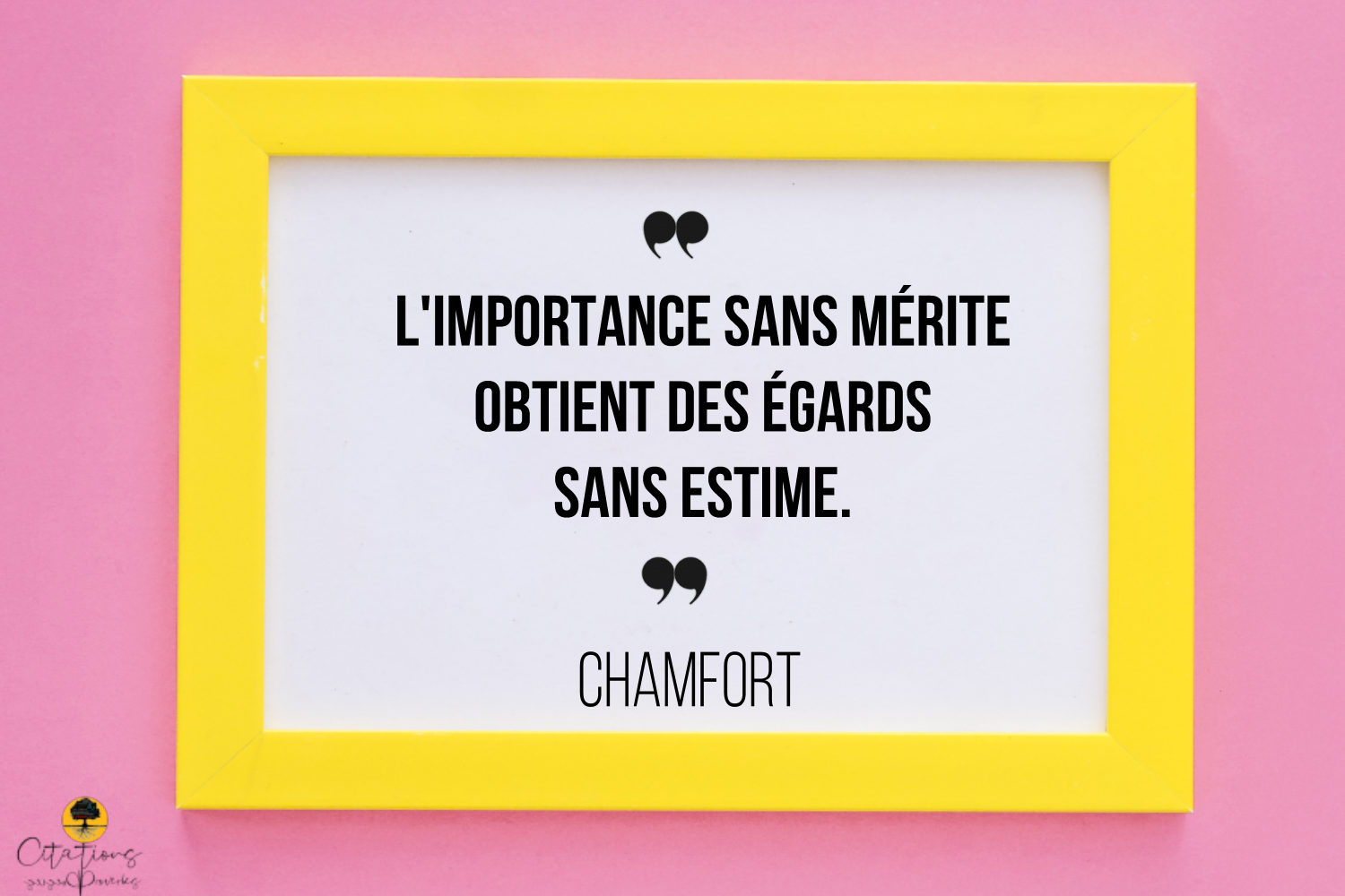 Citations L’importance sans mérite obtient des égards sans estime. 107 Share ” L’importance sans mérite obtient des égards sans estime.” CHAMFORT 107 Share