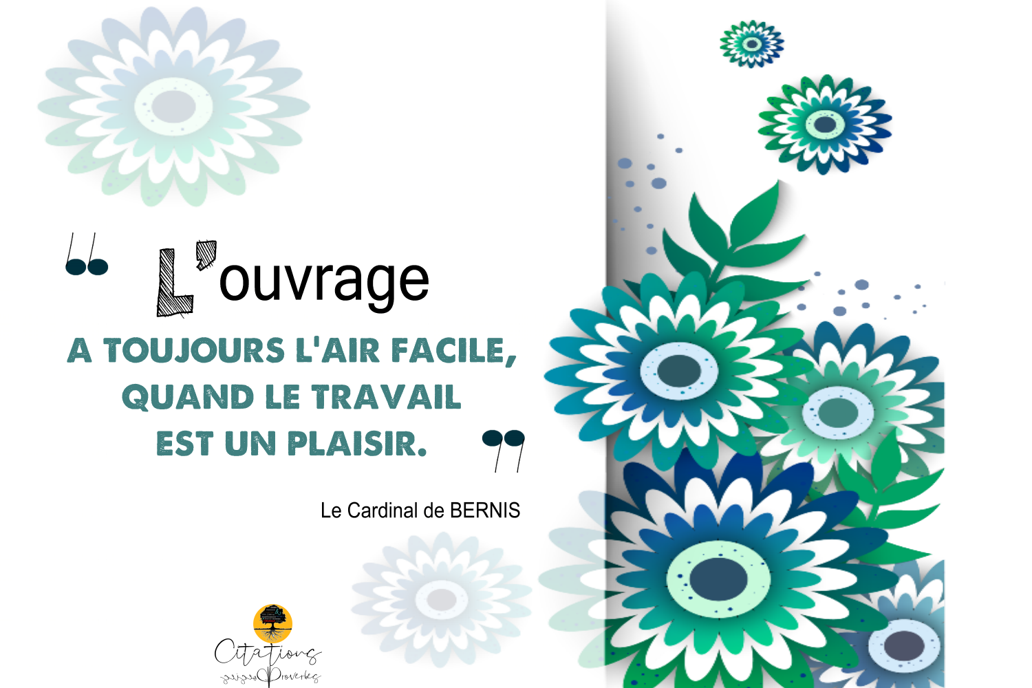 Citations L’ouvrage a toujours l’air facile, quand le travail est un plaisir. 26 Share L’ouvrage a toujours l’air facile, quand le travail est un plaisir. Le Cardinal de BERNIS 26 Share