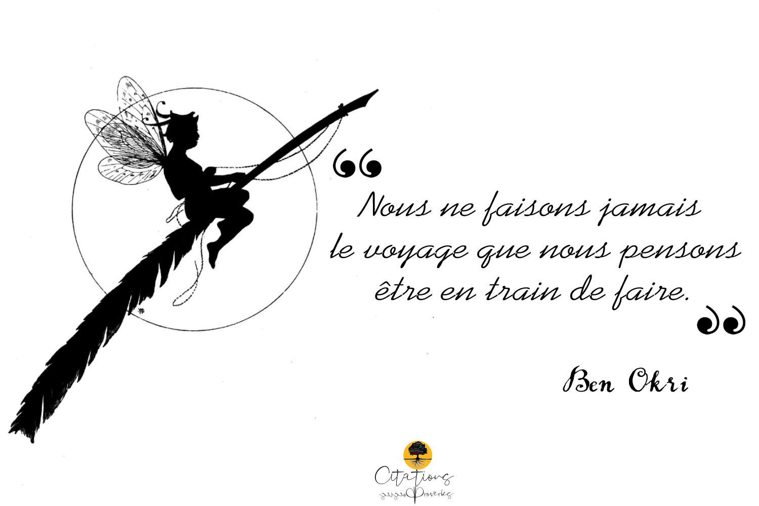 Citations Nous ne faisons jamais le voyage que nous pensons être en train de faire. 27 Share Nous ne faisons jamais le voyage que nous pensons être en train de faire. Ben Okri 27 Share