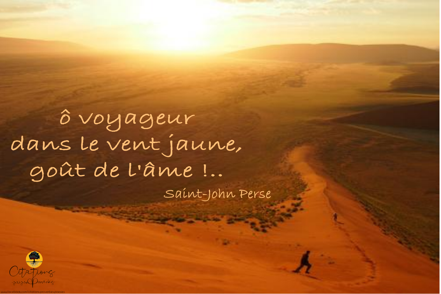 Poésie ô voyageur dans le vent jaune, goût de l’âme !.. 138 Share ô voyageur dans le vent jaune, goût de l’âme !.. Saint-John Perse 138 Share