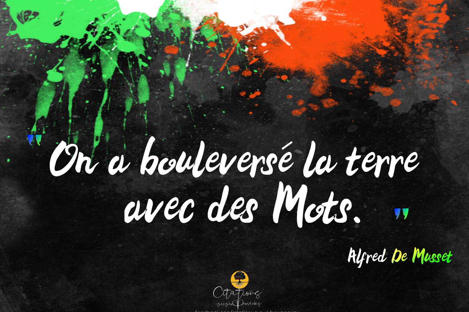 Poésie On a bouleversé la terre avec des Mots. 62 Share On a bouleversé la terre avec des Mots. Alfred De Musset 62 Share