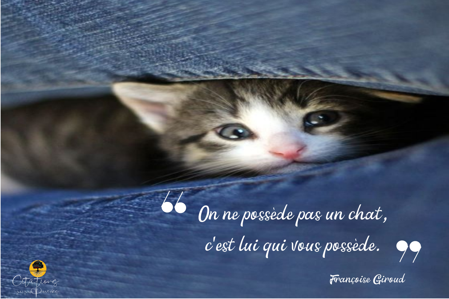 Citations On ne possède pas un chat, c’est lui qui vous possède. 126 Share On ne possède pas un chat, c’est lui qui vous possède. Françoise Giroud 126 Share