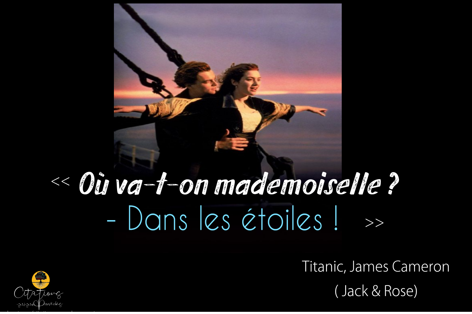 Citations Où va-t-on mademoiselle ? – << Dans les étoiles ! >> – Titanic 113 Share Où va-t-on mademoiselle ? << Dans les étoiles ! >> Titanic, James Cameron ( Jack & Rose) 113 Share