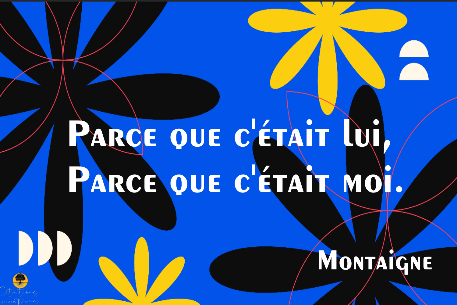 Citations Parce que c’était lui, Parce que c’était moi. 63 Share ” Parce que c’était lui, Parce que c’était moi.” Montaigne 63 Share