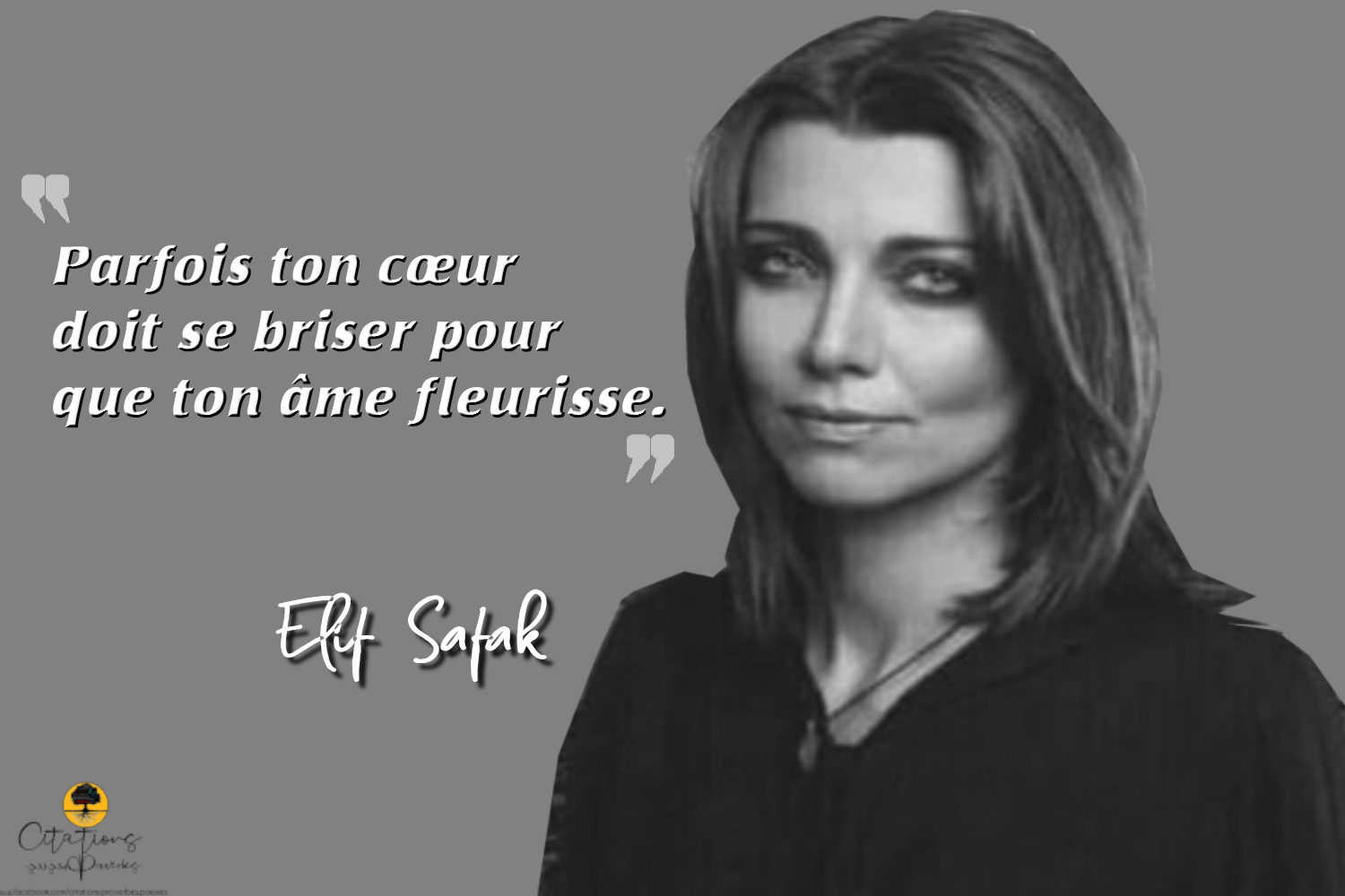 Citations Parfois ton cœur doit se briser pour que ton âme fleurisse. 52 Share ” Parfois ton cœur doit se briser pour que ton âme fleurisse.” Elif Safak 52 Share