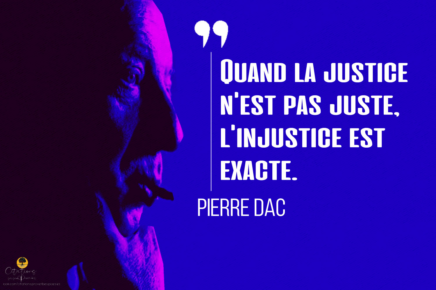 Citations Quand la justice n’est pas juste, l’injustice est exacte. 44 Share ” Quand la justice n’est pas juste, l’injustice est exacte.” PIERRE DAC 44 Share