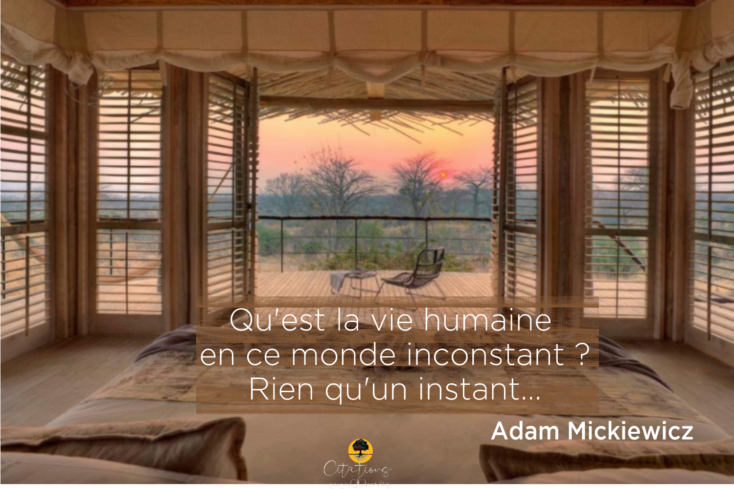 Citations Qu’est la vie humaine en ce monde inconstant ? Rien qu’un instant… 20 Share Qu’est la vie humaine en ce monde inconstant ? Rien qu’un instant… Adam Mickiewicz 20 Share