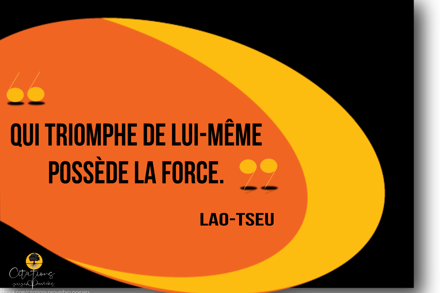 Citations Qui triomphe de lui-même possède la force. 32 Share Qui triomphe de lui-même possède la force. Lao-tseu 32 Share