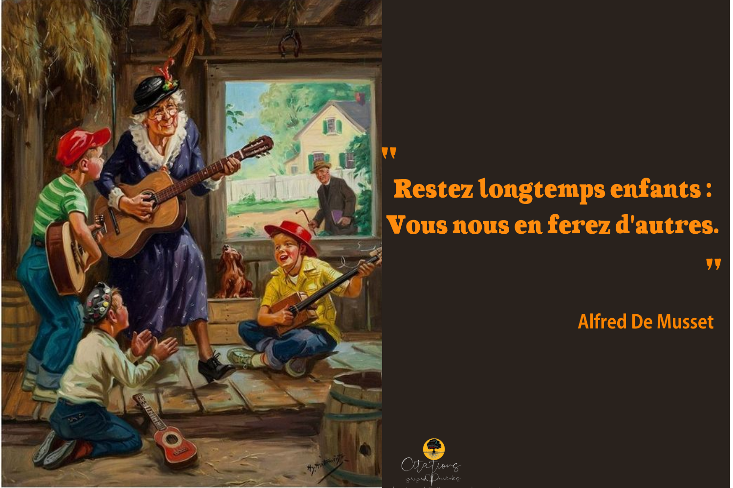 Citations Restez longtemps enfants : Vous nous en ferez d’autres. 20 Share Restez longtemps enfants : Vous nous en ferez d’autres. Alfred De Musset 20 Share