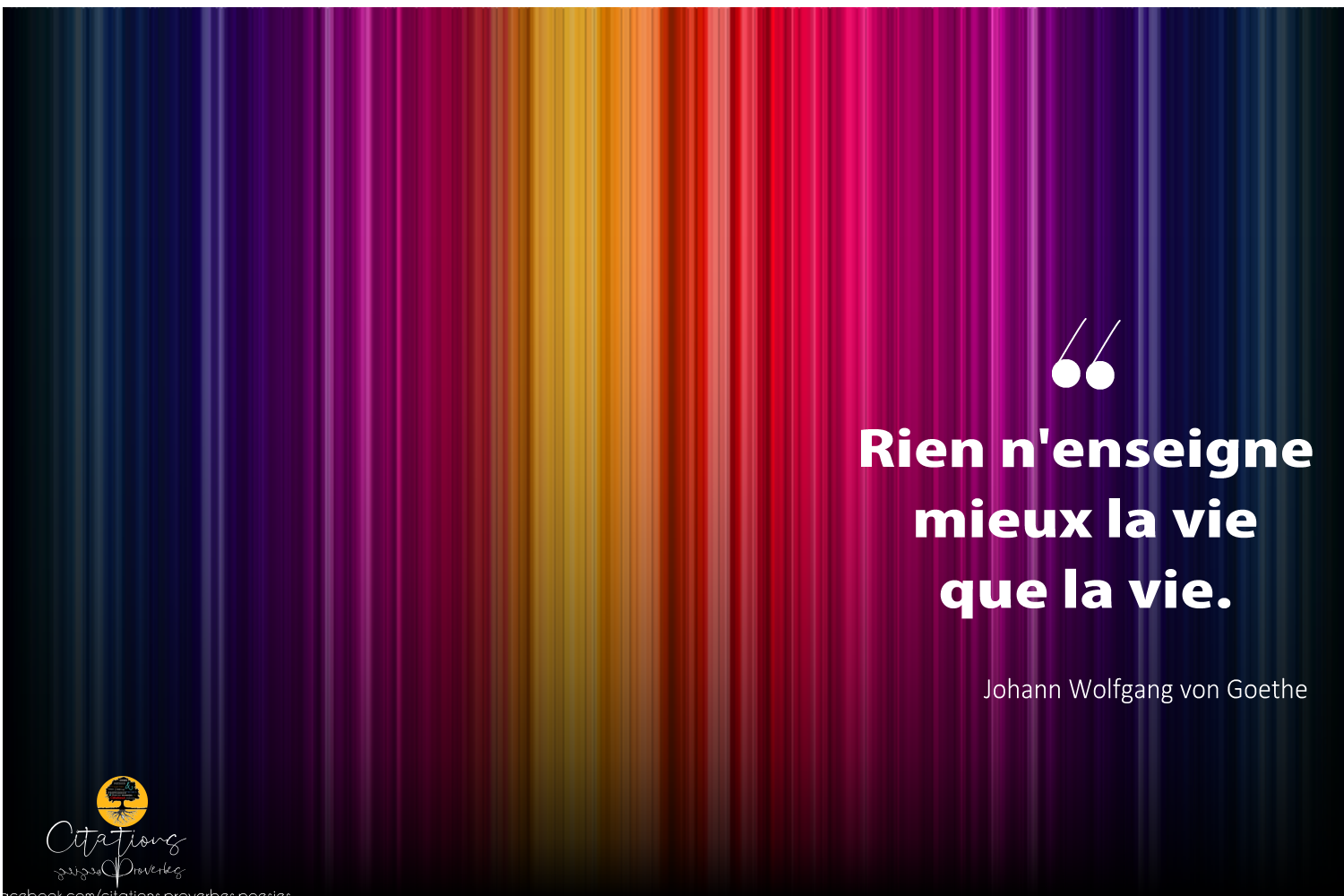 Citations Rien n’enseigne mieux la vie que la vie. 19 Share Rien n’enseigne mieux la vie que la vie. Johann Wolfgang von Goethe 19 Share