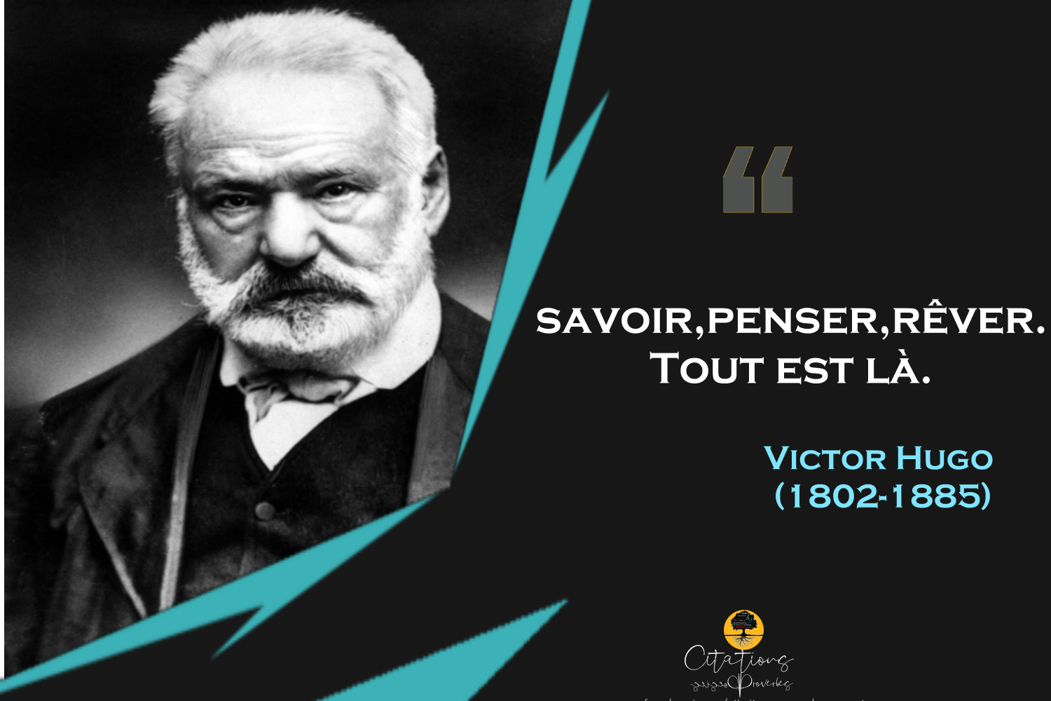 Citations savoir,penser,rêver. Tout est là. 47 Share savoir,penser,rêver. Tout est là. Victor Hugo (1802-1885) 47 Share