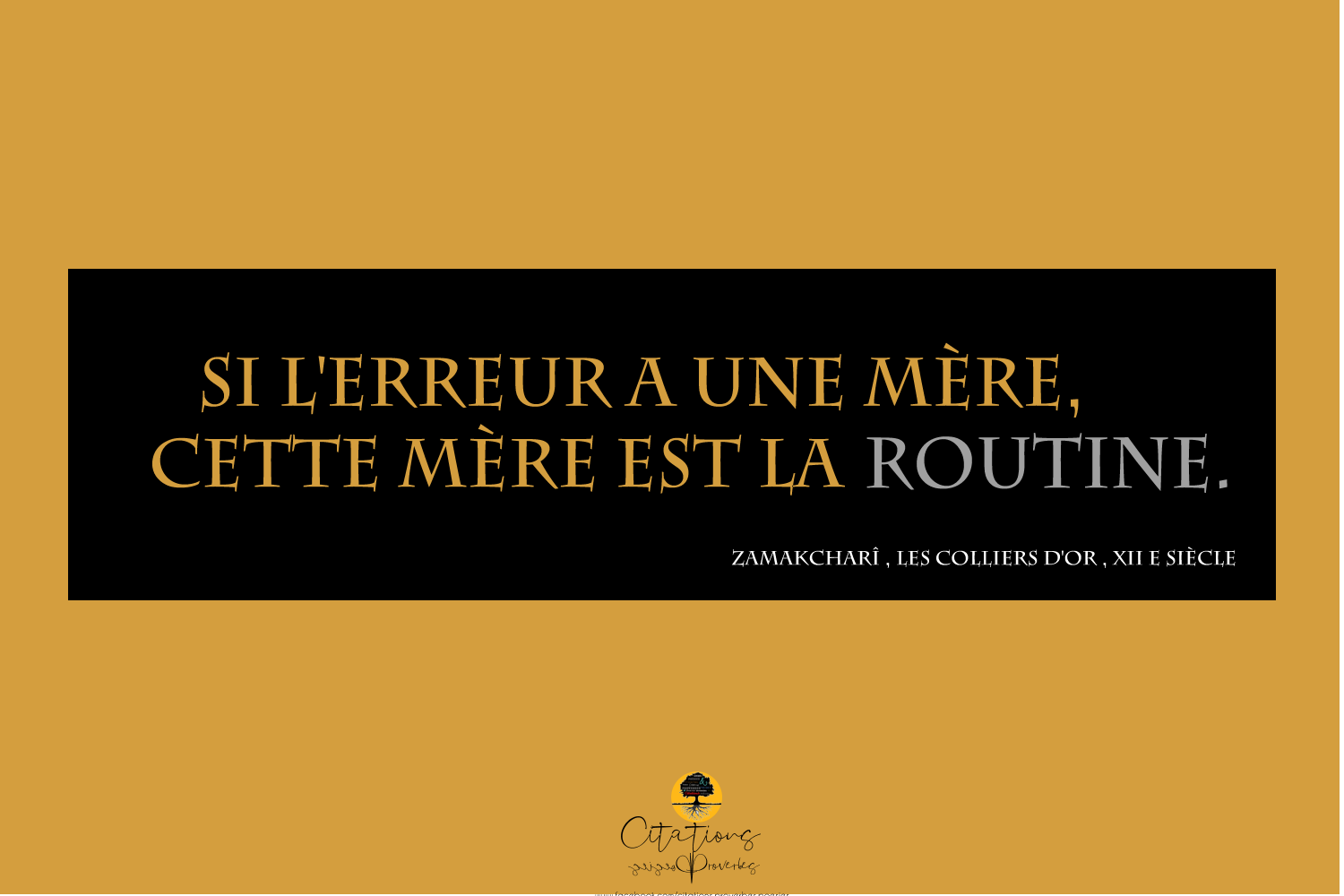 Citations Si l’erreur a une mère…. 26 Share Si l’erreur a une mère, cette mère est la routine. Zamakcharî , les colliers d’or , XII e Siècle 26 Share