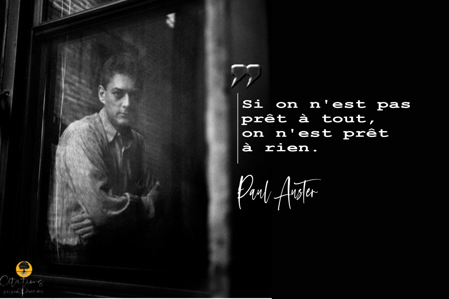 Citations Si on n’est pas prêt à tout, on n’est prêt à rien. 24 Share ”Si on n’est pas prêt à tout, on n’est prêt à rien.” Paul Auster 24 Share