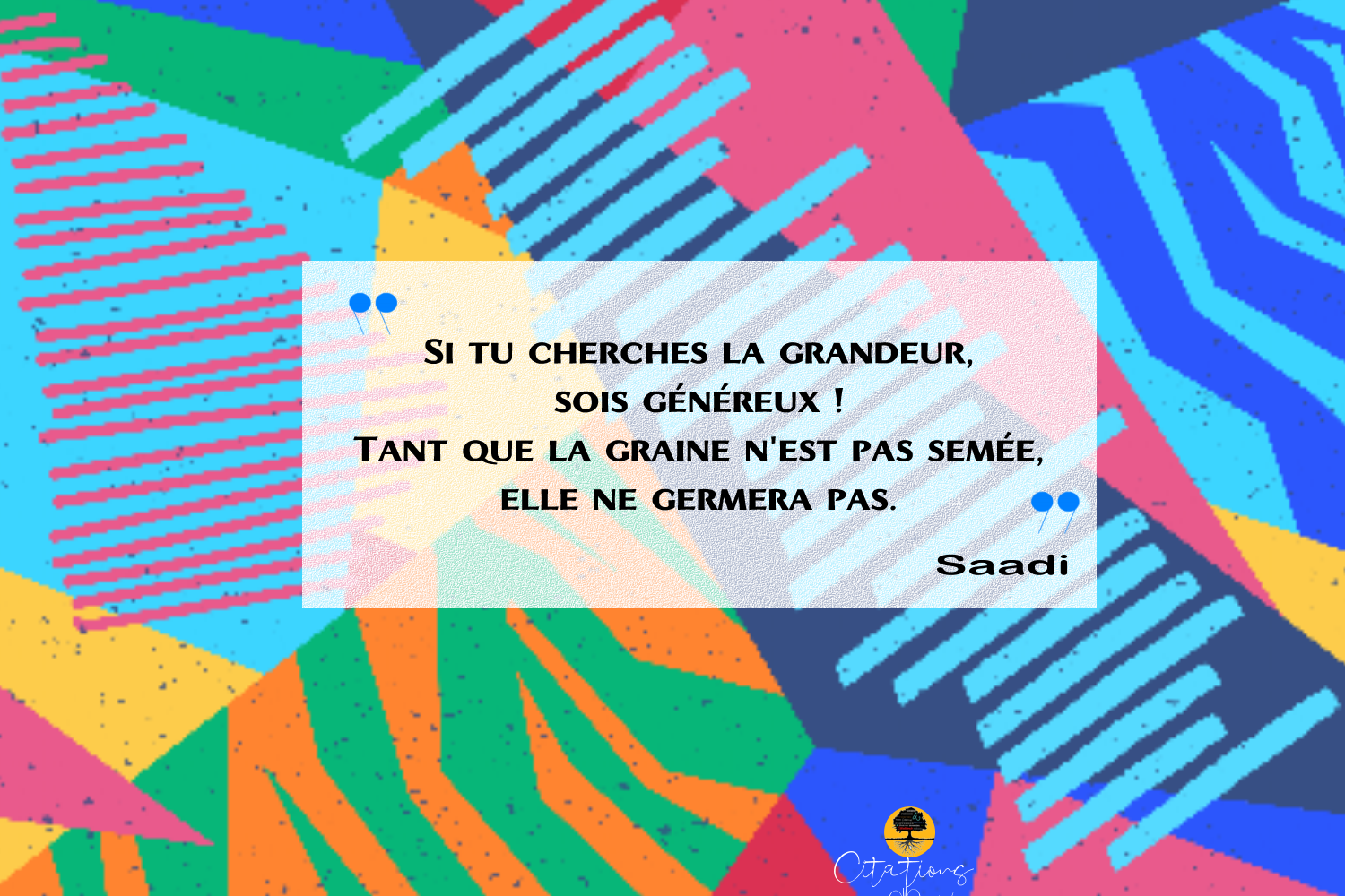 Si tu cherches la grandeur, sois généreux ! Tant que la graine n’est pas semée, elle ne germera pas.