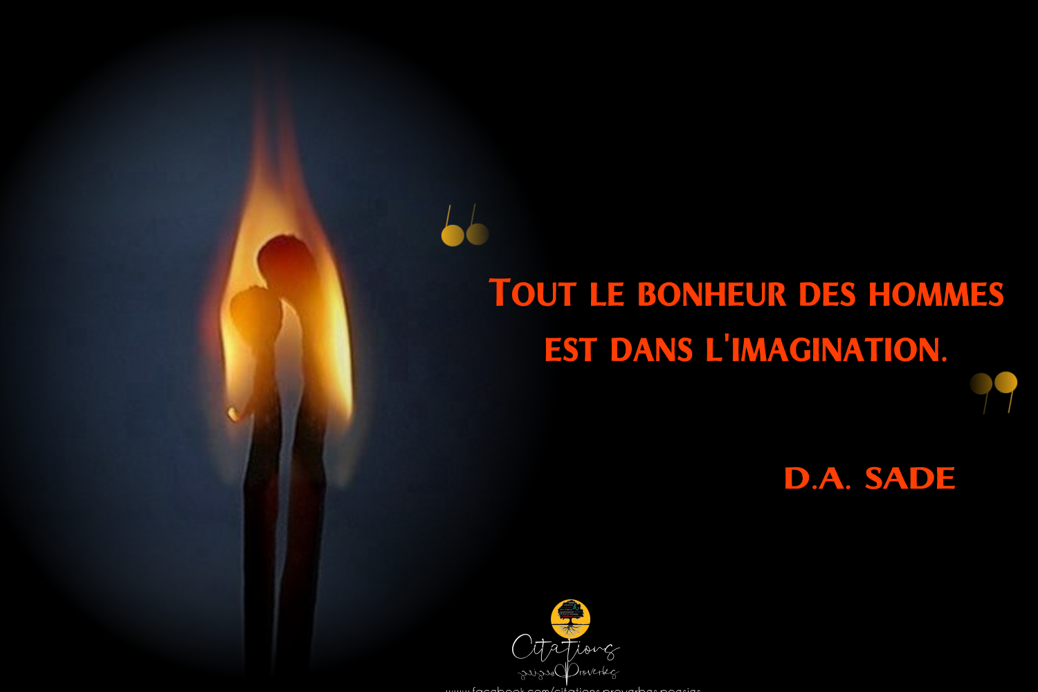 Citations Tout le bonheur des hommes est dans l’imagination. 56 Share Tout le bonheur des hommes est dans l’imagination. D.A. SADE 56 Share