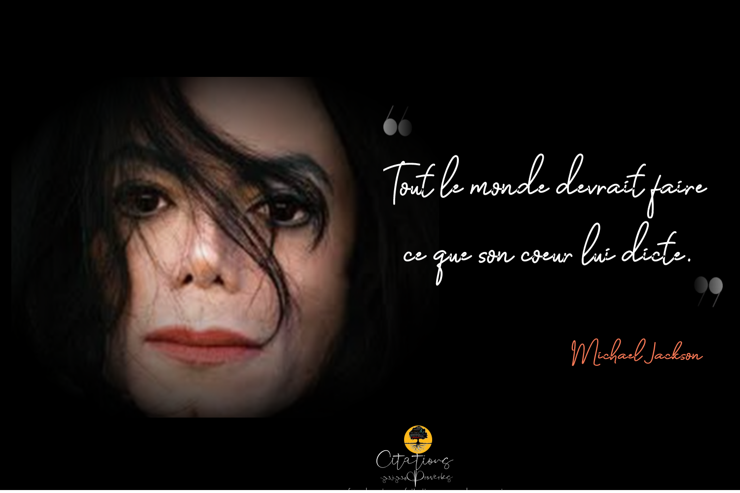 Citations Tout le monde devrait faire ce que son coeur lui dicte. 342 Share Tout le monde devrait faire ce que son cœur lui dicte. Michael Jackson 342 Share