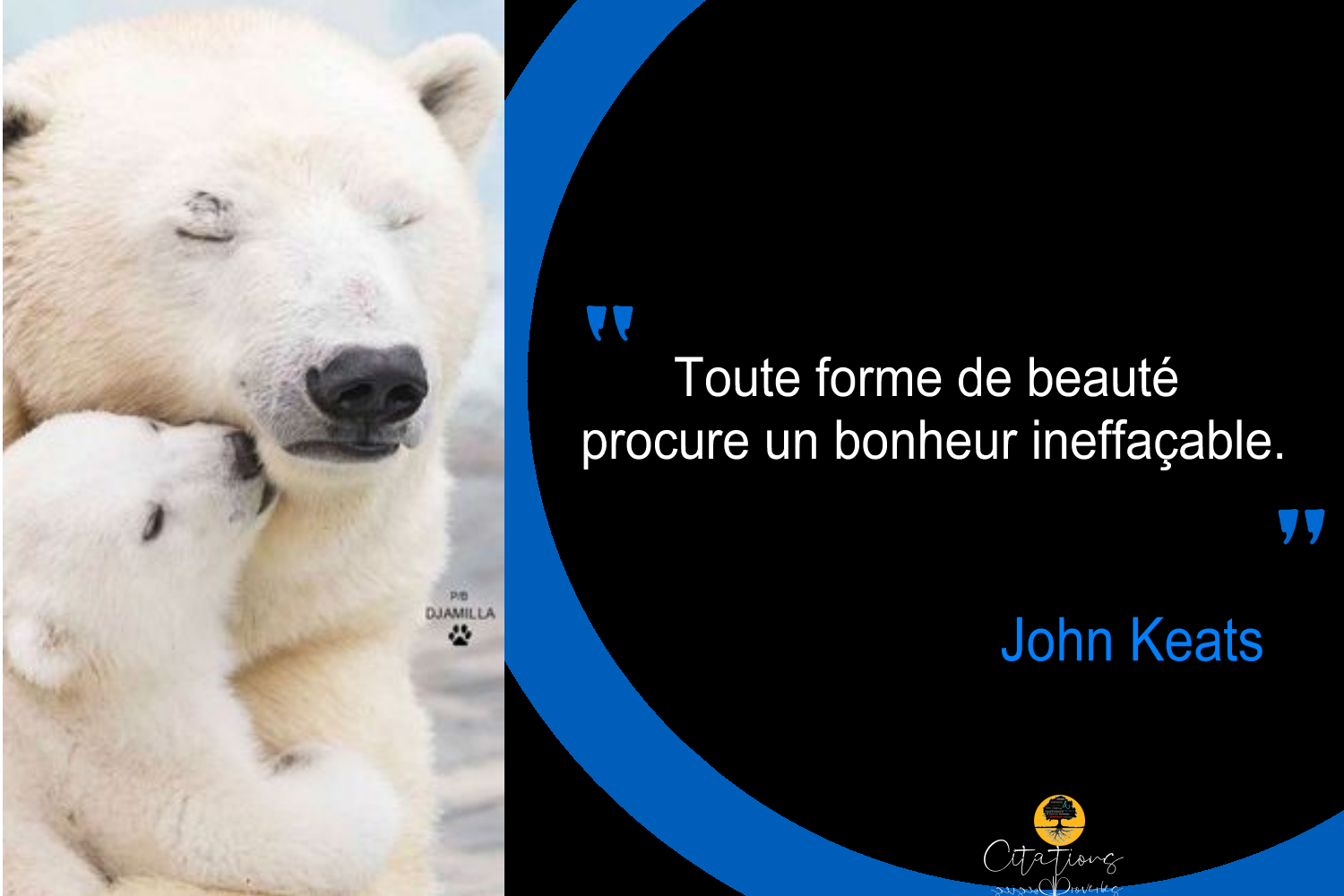 Citations Toute forme de beauté procure un bonheur ineffaçable. 32 Share Toute forme de beauté procure un bonheur ineffaçable. John Keats 32 Share