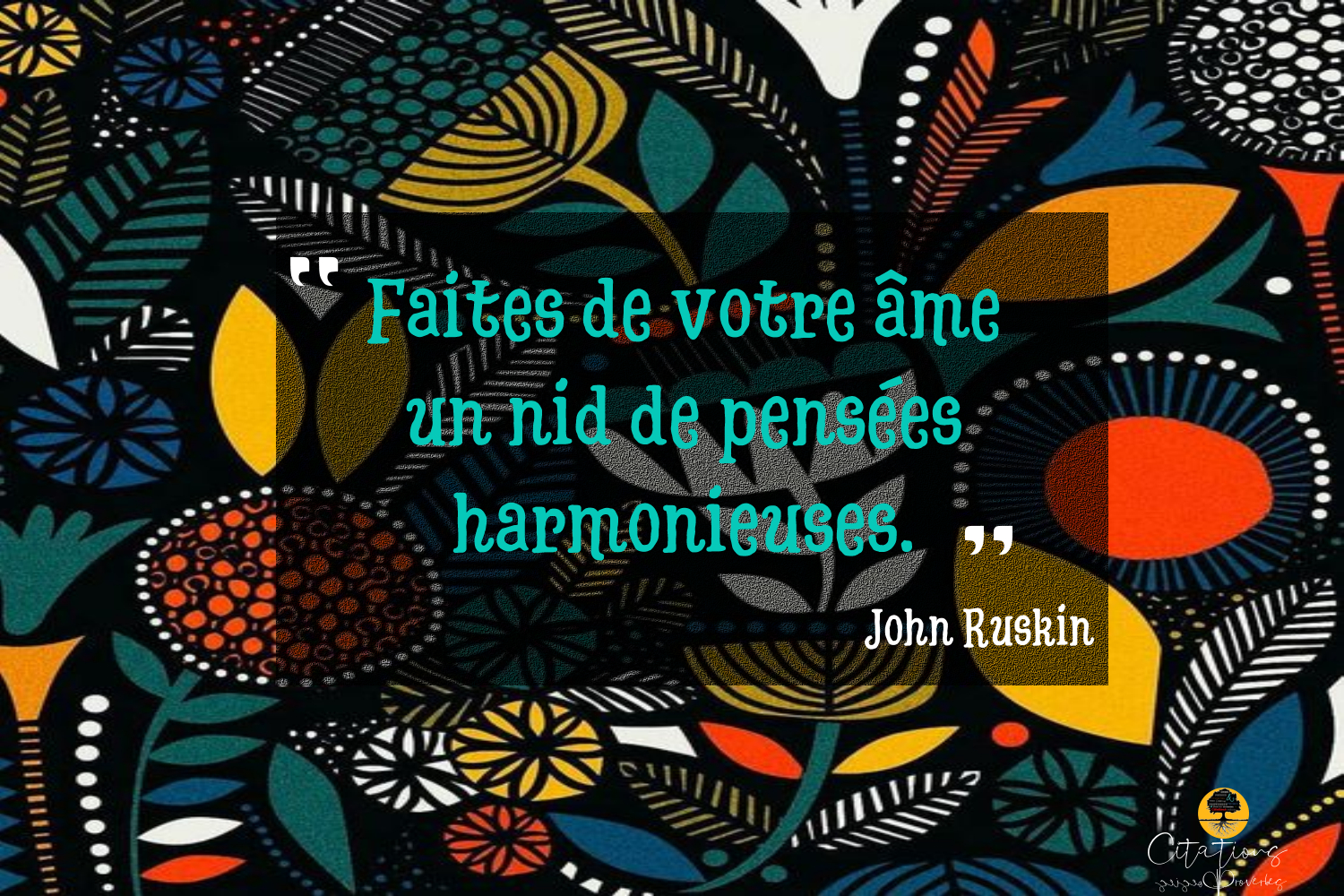 Citations Un nid de pensées harmonieuses 39 Share Faites de votre âme un nid de pensées harmonieuses. John Ruskin 39 Share