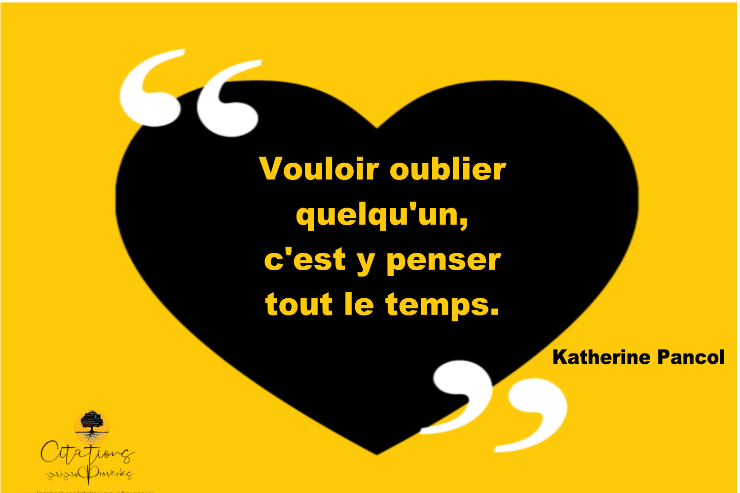 Citations Vouloir oublier – Pancol 79 Share Vouloir oublier quelqu’un, c’est y penser tout le temps. Katherine Pancol 79 Share