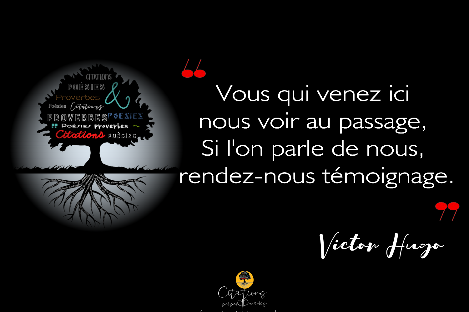 Vous qui venez ici nous voir au passage, Si l’on parle de nous, rendez-nous témoignage.